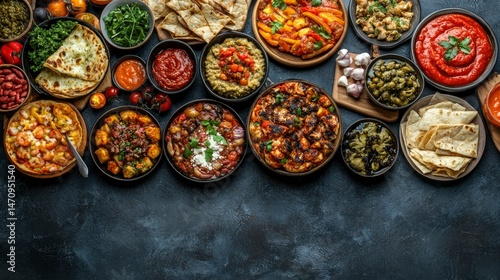 indian food, curry, tandoori, spice, herb, vegetable, lentil, rice, sauce, platter, feast, banquet, table, food photography, topview, culinary, epicure, eatery, dinner, lunch, delicious, tasty, flavorful, aromatic, vibrant, colourful, healthy, traditional, authentic, cultural, heritage, dark background, black background