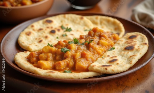 Delicious Indian curry with naan bread