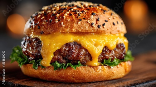 Delicious Juicy Cheese Burger Topped with Melted Cheese Fresh Lettuce and Perfectly Toasted Bun