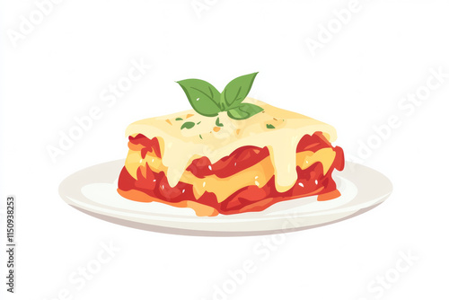 lasagna, plate, cheese, basil, food, italian, pasta, meal, dish, tomatoes, creamy, layer, cooking, cookery, epicure, eatery, dinner, lunch, savoury, herb, slice, homemade, appetising, vegetarian, comfort food, baked, fresh, ingredient, presentation, delicious, culinary, receipe, serving, traditional, favor, tasty, wholesome, nourishment, colourful, vibrant, illustration, vector, graphic, design, artwork, visual