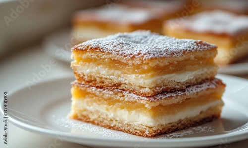 Delicious layered dessert with creamy filling and powdered sugar topping