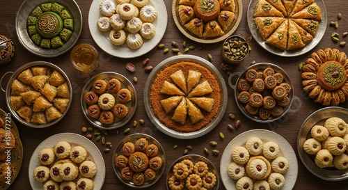 Delicious middle eastern sweets baklava pistachio cookies assortment festive treats food baked party