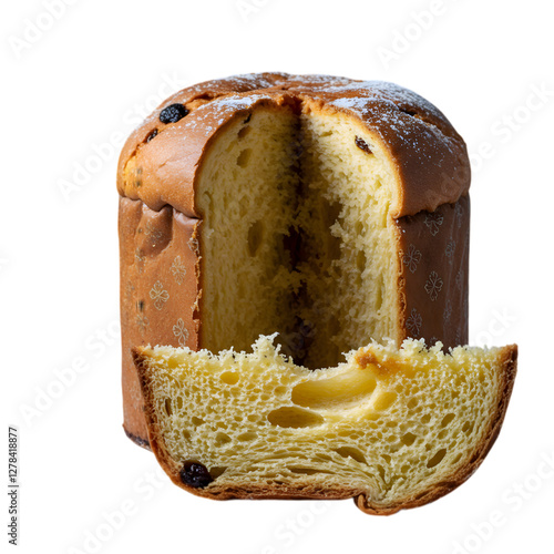 Delicious Panettone with Raisins and Powdered Sugar, Italian Sweet Bread