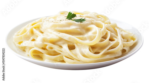 Delicious pasta food. Fettuccine alfredo isolated on white background