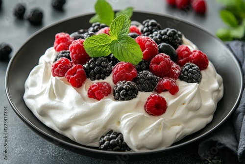 dessert, whipped, cream, berry, raspberry, blackberry, food, mint, decoration, sweet, fruit, elegant, delicacy, culinary, indulgence, blackberry, raspberry, sweetness, snack, time, refreshment, treat, plate, dish, bakery, product, item, sugar, content, bake, shop, background