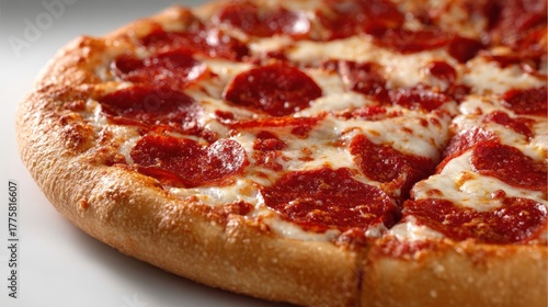 Delicious Pepperoni Pizza Close-Up: Freshly Baked, Mouthwatering Meal Ready to Eat