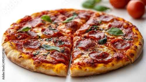 Delicious Pepperoni Pizza with Basil and Cheese