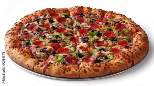 pizza, pepperoni, green pepper, olive, cheese, sauce, crust, food, italian, fast food, dinner, lunch, meal, snack, tasty, delicious, fresh, homemade, eatery, delivery, take-away, epicure, catering, party, family, friends, celebration, cooking, baking, receipe, ingredient, cookery, gastronomy, culinary, eat, ravenous, craving, comfort food, junk food, indulge, treat, enjoy, satisfying, appetising, mouth-watering, food photography, white background