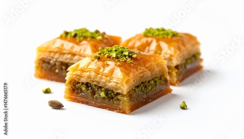 Delicious Pistachio Baklava Sweet Pastry Treats Golden Brown Layers Closeup