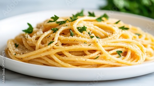 Delicious Plate of Spaghetti with Fresh Herbs and Grated Cheese for Italian Cuisine Lovers