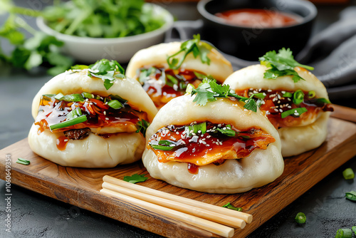 dumpling, sauce, herb, wooden, board, food, cookery, meal, cooking, culinary, fresh, epicure, rustic, presentation, asian, chopstick, texture, favor, ingredient, plate, share, delicious, snack, comfort, receipe, traditional, steam, belly, feast, dining, table, vegetarian, grill, sesame, drizzle, aromatic, garnish, side, dip, home, made, warm, bite, crispy, eat, enjoy, passion
