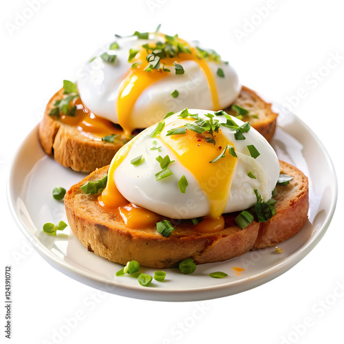 Delicious poached eggs on toasted bread with hollandaise sauce food meal on transparent background