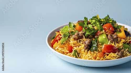 Delicious rice dish with colorful vegetables and herbs, perfect for meals