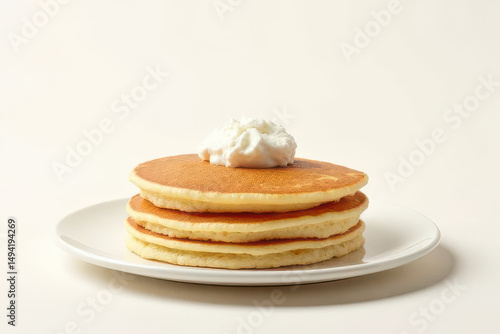 Delicious Ricotta Pancakes: Clean Food Photography on White Plate, Neutral Background, Studio Glow Radiance