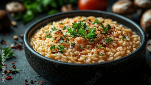 risotto, rice, mushroom, herb, parsley, garlic, onion, pepper, salt, italian food, italian cuisine, dinner, lunch, food photography, culinary, epicure, healthy, vegetarian, vegan, side dish, delicious, tasty, appetising, receipe, cooking, food and drink, food