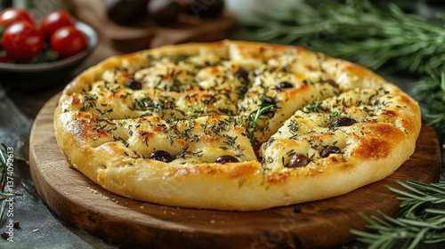 Delicious Rosemary and Olive Focaccia Bread Freshly Baked Italian Flatbread with Herbs