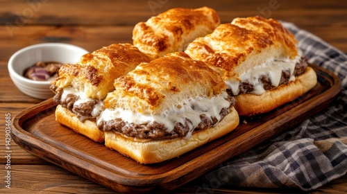 Delicious Sandwich Served on Rustic Wooden Tray with Natural Elements