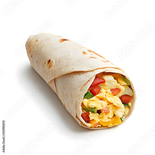 Delicious Scrambled Egg Burrito with Vegetables in a Flour Tortilla