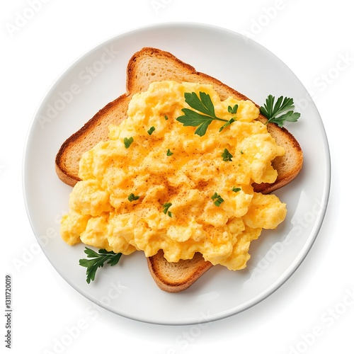 Delicious Scrambled Eggs on Toasted Bread Garnish with Parsley for Breakfast