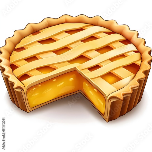 Delicious Slice of Lattice-Crusted Lemon Pie on a White Background