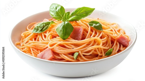 spaghetti, ham, basil, bowl, pasta, italian, cookery, fresh, food, meal, ingredient, dish, epicure, healthy, savoury, tasty, preparation, cooking, dining, receipe, lunch, dinner, homemade, presentation, classic, eatery, culinary arts, comfort food, vibrant, appetising, parsley, oregano, aroma, seasonal, flavorful, serving, nourishment, colours, texture, style, garnish, wholesome, delicacy, favor