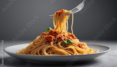 spaghetti, pasta, italian food, food photography, delicious, meal, dinner, lunch, cookery, eatery, cooking, receipe, plate, fork, basil, tasty, appetising, fresh, homemade, traditional, comfort food, eat, closeup