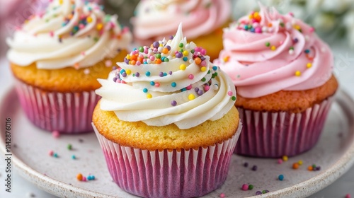 Delicious Sprinkled Cupcakes on a Plate