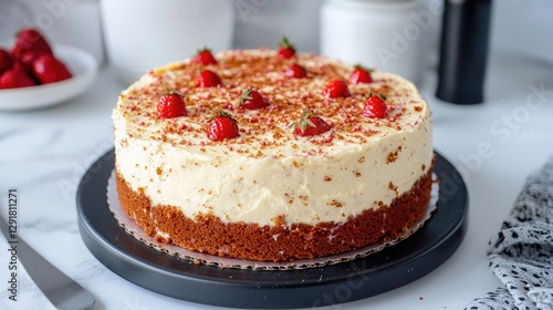 Delicious Strawberry Cheesecake, Kitchen Setting. Possible use Dessert photography