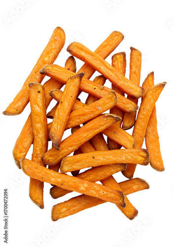 Delicious Sweet Potato Fries Isolated On Black Background Photo