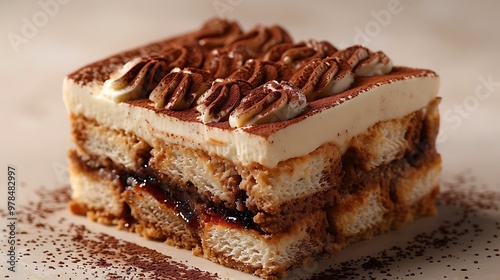 Delicious Tiramisu Dessert with Cocoa Powder and Cream