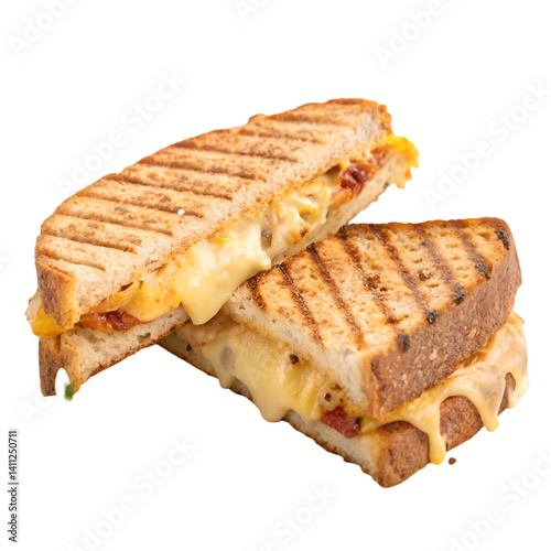 Delicious toasted panini sandwich isolated on white background
