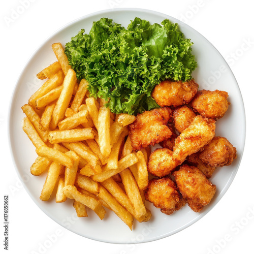 Delicious Top View of Fish and Chips Plate for Culinary Promotions on transparent background