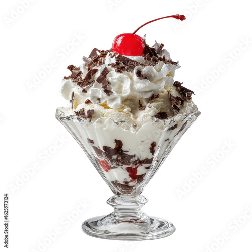 ice cream, sundae, dessert, vanilla, chocolate, whipped cream, cherry, sweet, treat, glacé, dairy, creamy, food, indulgence, delicious, cold, refreshing, summer, refreshment, tasty, confection, epicure, dish, glasses, serving, presentation, garnish, no people, studio shot, isolated, black background, food photography, sugar, calorie, rich, decadent