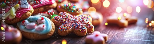 Deliciously decorated cookies with vibrant icing and sprinkles, perfect for festive celebrations and sweet indulgence.