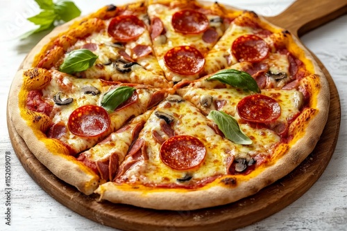 Deliciously Sliced Pepperoni Pizza on Wooden Board