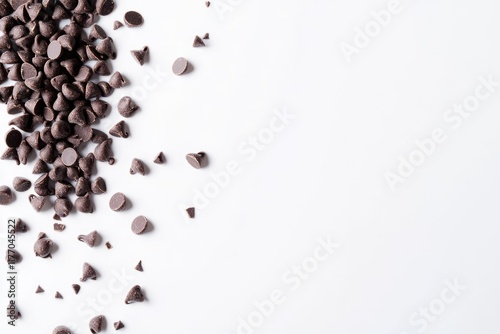 Delightful Arrangement of Rich Cocoa Chips on a Bright Background