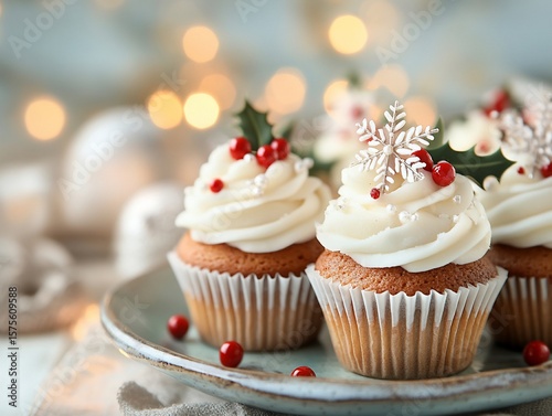 Delightful holiday cupcakes with creamy frosting and festive decorations