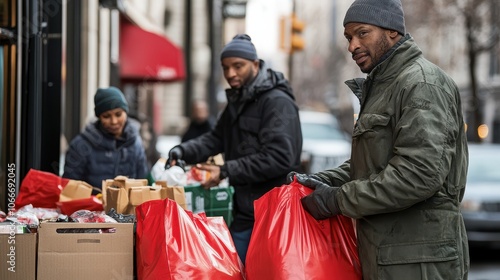 delivery, driver, group, preparation, distribute, urban, teamwork, bag, good, grocery, service, community, support, effort, package, assistance, people, organisation, street, street scene, winter, coat, glove, helpful, camaraderie, local, supply, food, charity, distribution, logistic, collaboration, transport, shopping, volunteer, aid, resource, mission, work, neighbourhood
