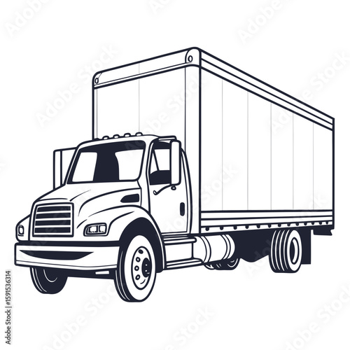 truck, delivery, cargo, box, vehicle, transport, logistic, commercial, freight, hauling, transportation, wheel, engine, road, highway, shipping, moving, industry, business, service, graphic, illustration, outline, black-and-white, simple, clean, modern, symbol, design, isolated