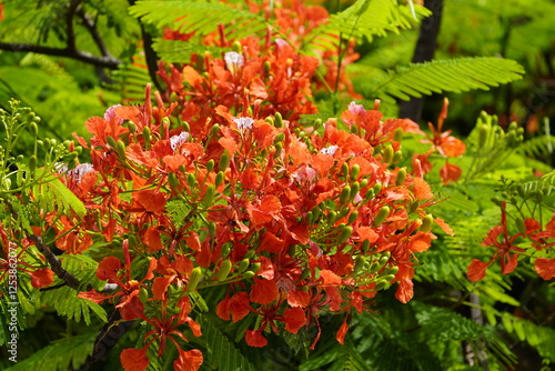 Delonix regia is a species of flowering plant in the bean family Fabaceae, subfamily Caesalpinioideae native to Madagascar. Fortaleza Ceará, Brazil.
