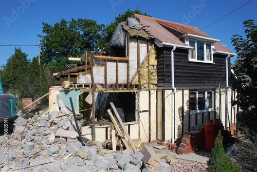 Demolition of the side of a house.