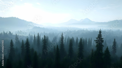 forest, tree, nature, landscape, mountain, fog, misty, scenic, hill, atmosphere, environment, sunlight, morning, sky, blue, green, peaceful, serene, tranquil, high-coloured, texture, silhouette, wilderness, ecology, horizon, view, natural, peak, evergreen, timberland, distant, height, vapour, clarity, depth, space, light, daylight, gradient, perspective, background, scenery, vale, atmospheric, brightness, elevation, vaporous