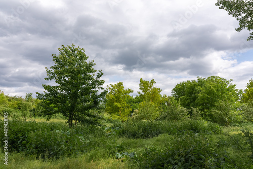 densely overgrown green landscape in summer