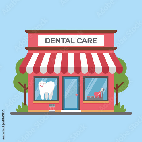 dental, care, clinic, building, dentist, teeth, hygiene, health, treatment, orthodontic, facades, awning, window, chair, illustration, flat, design, service, exterior, medicals, professional, business, health care, clean, oral, practice, office, consultation, teeth, equipment, reception, waiting, architecture, urban, town, appointment, check-up, lifestyle, doctor, industry, construction, place, nobody