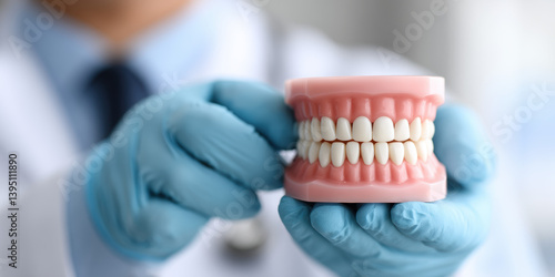 Dental examination and care techniques dental office image of dentist holding teeth model professional setting close-up view dental health awareness