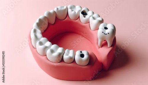 Dental health awareness tooth decay model educational display teaching environment close-up view