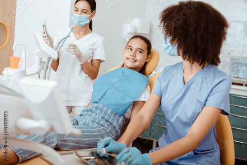 dentist, clinic, hand, unrecognizable, african american, pediatric, doctor, protective, mask, glove, nurse, exam, procedure, smiling, cute, little, girl, to sit, chair, hospital, small, teamwork, dentistry, coat, rubber, teeth, children, dental, equipment, treatment, work, team, health care, tool, cary, toothache, professional, instrument, care, teeth, root, pain, cavity, therapy, patient, oral, jaw, hygiene