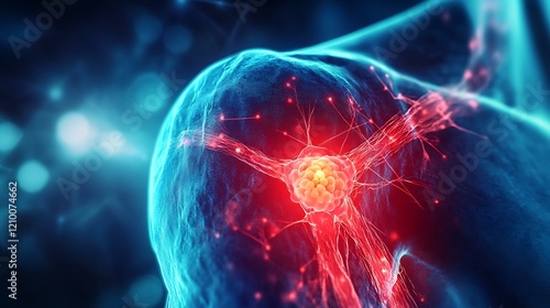 depiction, inflamed, trigger, point, bicep, muscle, glowing, red