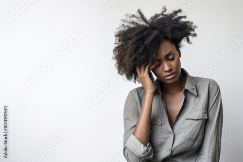 adult, black, woman, person, depressed, clothing, portrait, photo, white, downloadable, african american, human, smile, teeth, face, head, sad, grey, closeup, contemplation, happiness, cheerful, apparel, female, image, afro, coat, worried, casual clothes, hi-res, eyes closed, young adult, copy space, curly hair, coiffure, listening, long hair, head shot, isolated, looking, hd, standing, smiling