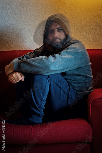 alcoholism, alone, anxiety, behaviour, bipolar, copy space, couch, cover, cry, depressed, depression, disorder, double exposure, drug, emotional, face, hand, health, health care, healthy, help, hood, ill, man, mental, mind, mood, 1, patient, people, person, prevention, problem, psychology, psychotherapy, recovery, sad, sorrowful, session, sick, disease, sitting, sofa, stress, stressed, therapy, thinking, thought